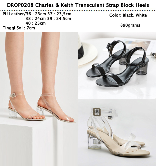 DROP0208 White Charles & Keith Transculent Strap Block Heels