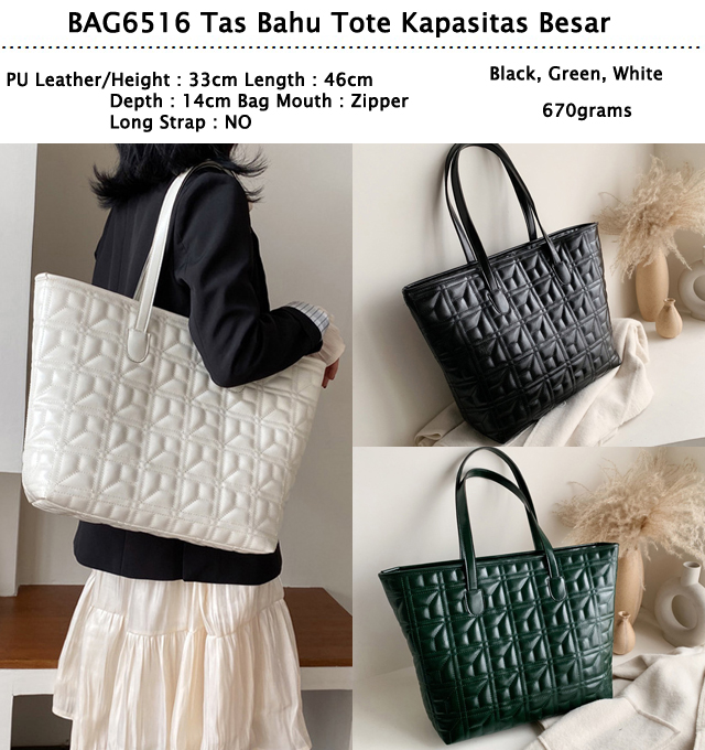 BAG6516 Black Tas Bahu Tote Kapasitas Besar