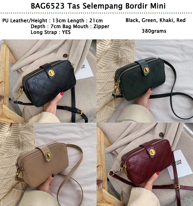 BAG6523 Khaki Tas Selempang Bordir Mini