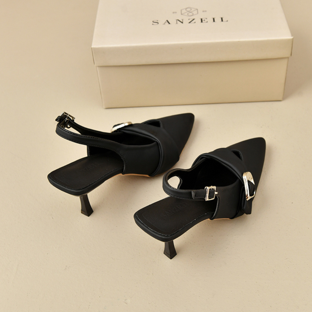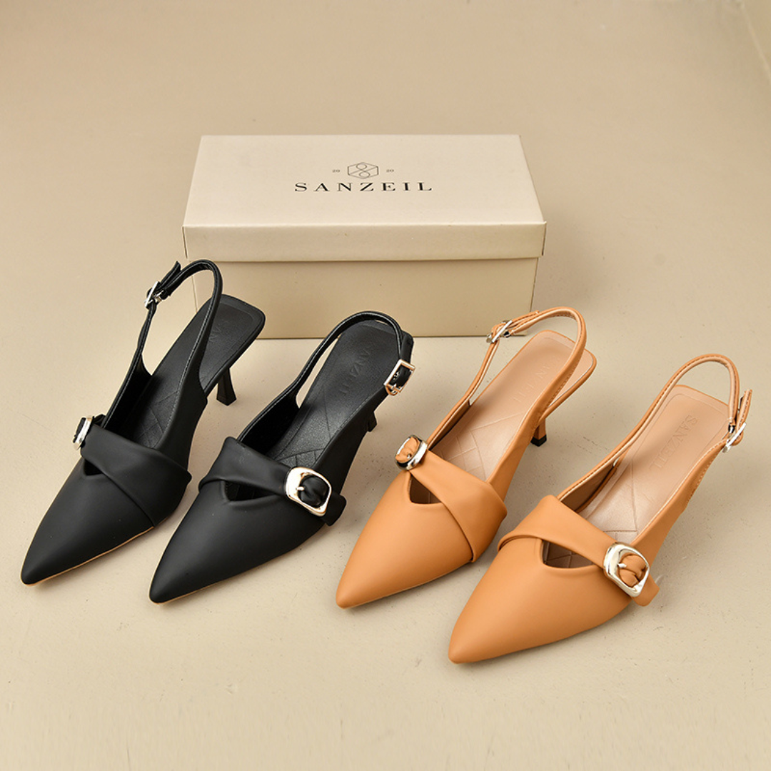 Dari bahan Kulit Sintetis serta jahitan rapi. Desain elegan Heels Kyan siap untuk menemani setiap langkahmu.